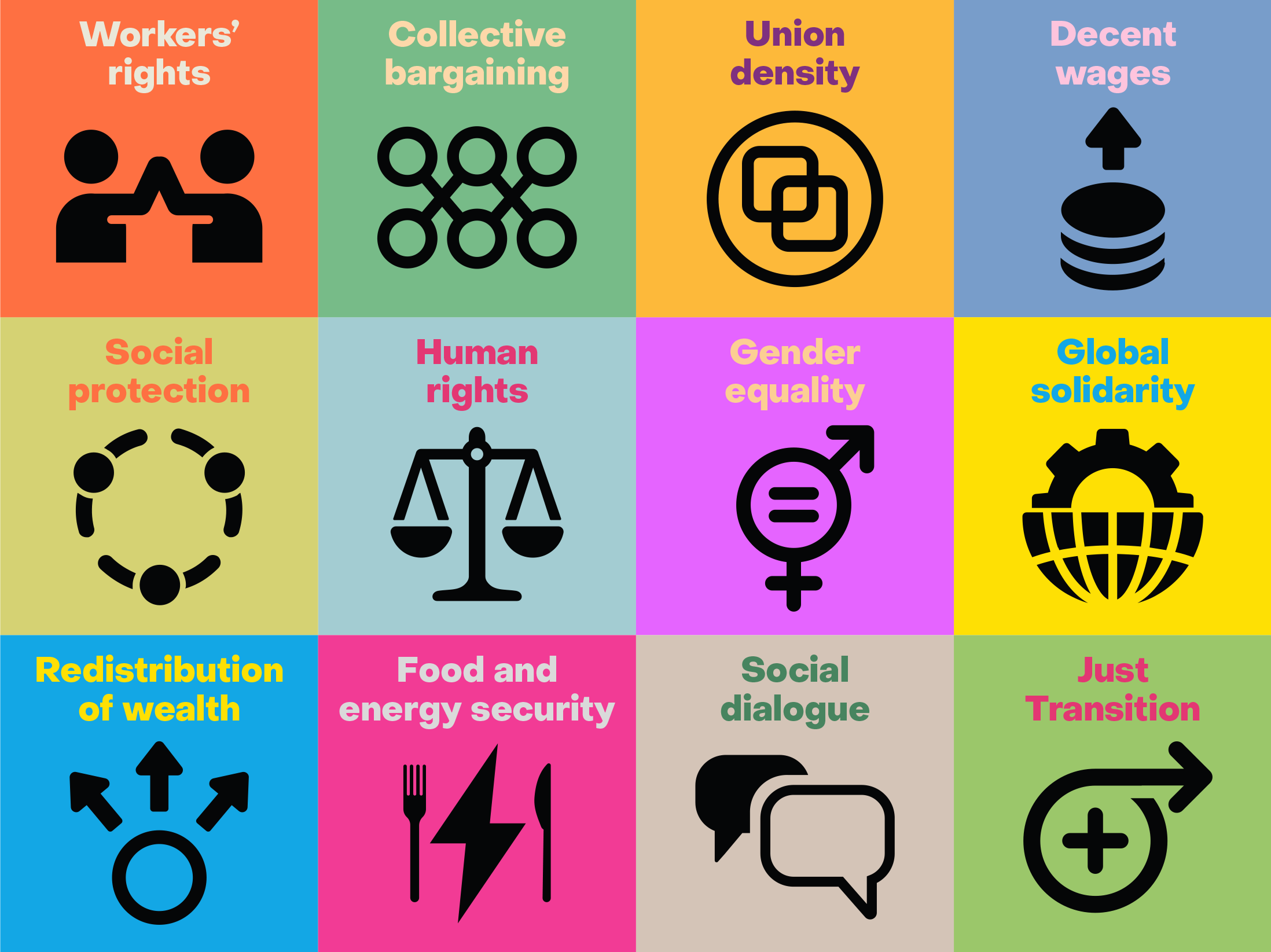 - Fundamental workers’ rights, with full implementation of ILO C87 and C98, and labour laws at national level that allow workers to defend themselves;