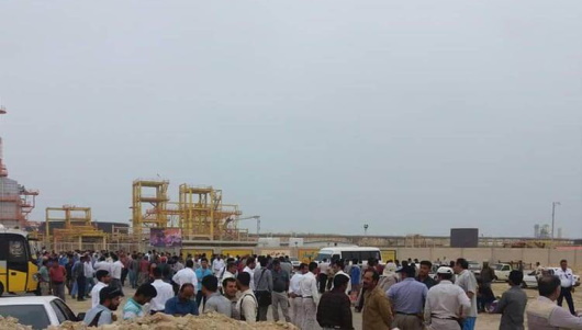 The strikers are builders, electricians, welders, pipefitters and other tradesmen working for employment agencies and gang masters on industrial projects in the world’s largest natural gas field. They work a shift cycle of 20 days on, ten days off, and are housed in dormitories close to the workplace while on shift. They intend to refuse to work for an entire 20-day shift cycle.