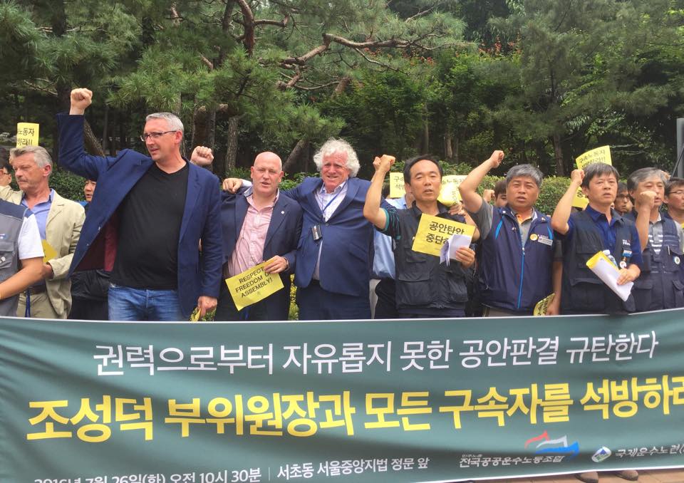 Global union leaders from the International Transport Workers’ Federation (ITF) attended the court in Seoul to monitor Sung-deok’s sentencing. ITF general secretary Steve Cotton told IndustriALL: