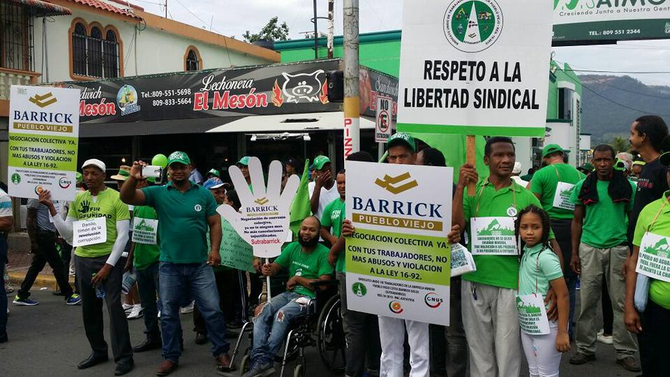 La compañía Barrick Pueblo Viejo, de capital canadiense, se opone desde hace dos años al funcionamiento del sindicato y se niega a negociar un convenio colectivo. La organización sindical se registró en 2010 en cumplimiento con lo establecido en la ley 16-92 del código de trabajo vigente en su país.