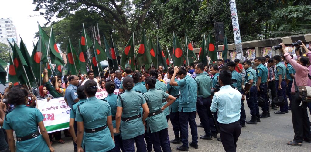 10 January, 2019A garment worker has been killed and another 50 injured after Bangladeshi police fired rubber bullets and tear gas at around 5,000 protesting workers on the outskirts of the capital, Dhaka, on Tuesday 8 January.