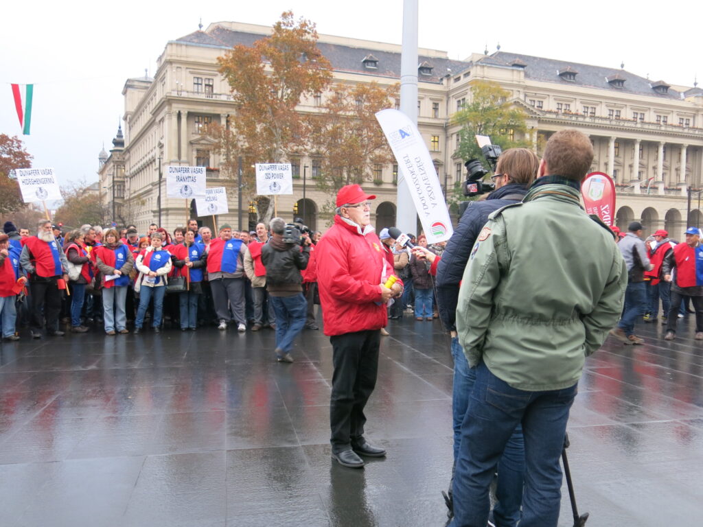 19 November, 2014On 17 November, IndustriALL Global Union affiliate, the Hungarian Metalworkers’ Federation (VASAS), staged a protest in Budapest in front of the Parliament to prevent a new austerity drive.