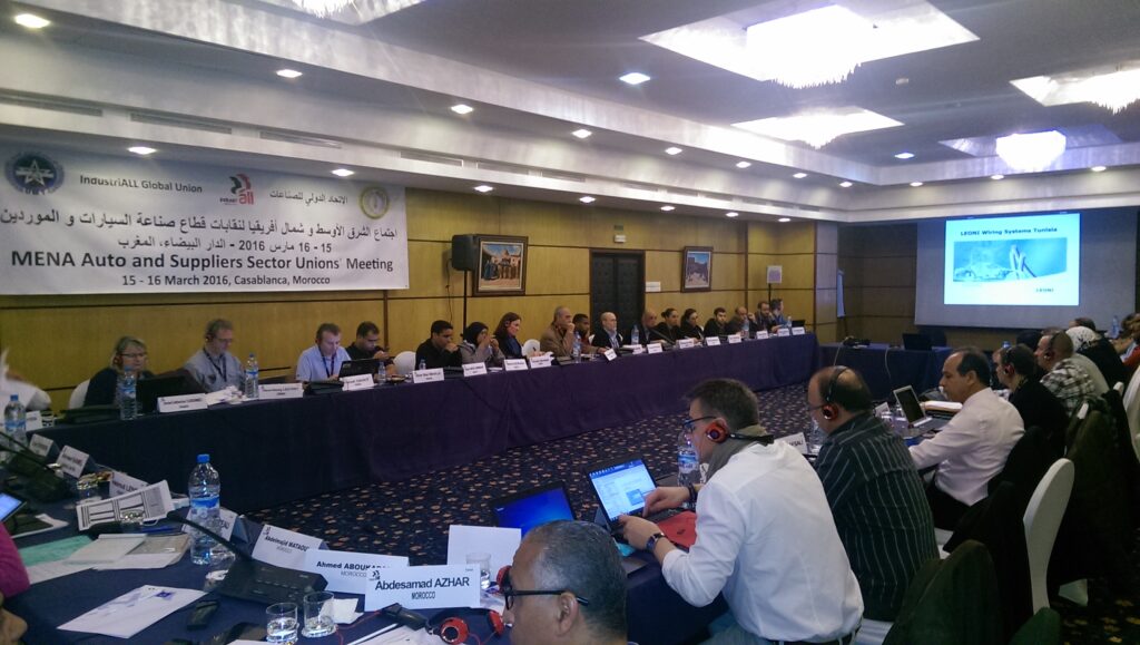 14 April, 2016Over 60 participants representing automotive workers in several transnational companies (TNCs) and their suppliers in the MENA region, gathered in Casablanca on 15 and 16 of March 2016 to look at ways of improving working conditions in the auto supply chain.