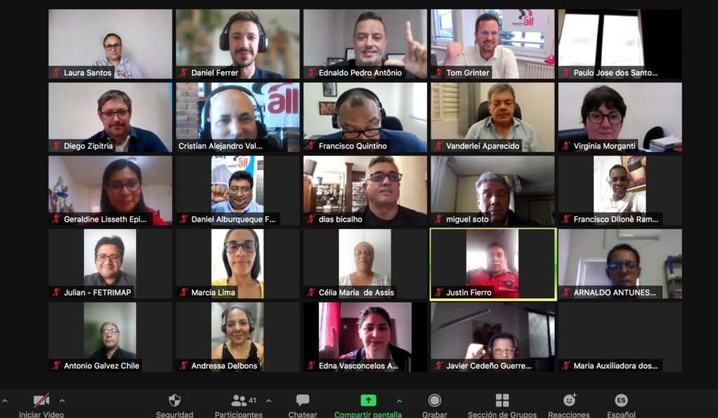 President of FEQUIMFAR and joint president of IndustriALL’s chemicals sector, Sergio Luis Leite, was also present. He highlighted the role that workers in the health sector and pharmaceuticals industry played in supporting the global population during the pandemic, stating that they were true heroes in the fight against COVID-19. He explained that the aim of the meeting was to discuss the situation of the chemicals sector both globally and regionally in order to come up with a programme of work for this year and the next.