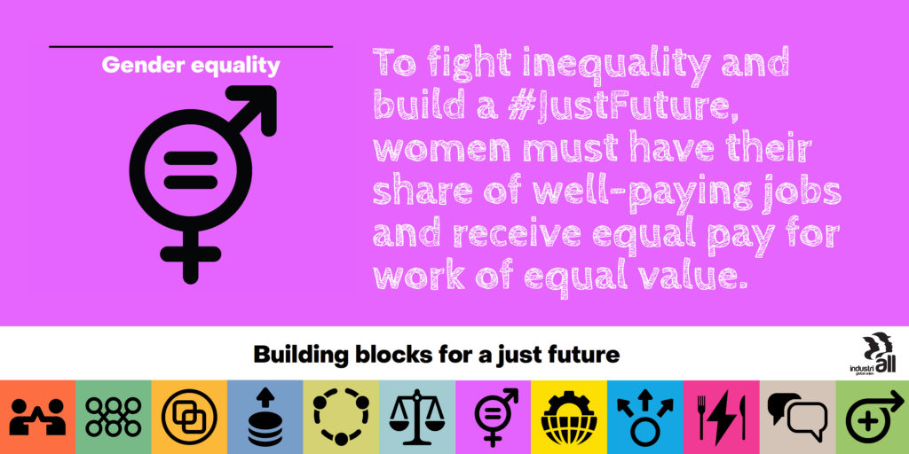 7 June, 2023Gender equality that ensures women have their share of well-paying jobs, and receive equal pay for work of equal value. All workers should enjoy equal rights, yet female and young workers remain subject to discrimination resulting in many being denied their fundamental rights. IndustriALL fights their discrimination at work by promoting their fairer and stronger participation in trade unions. Women must have equal pay, equal opportunities, and safe working environments.