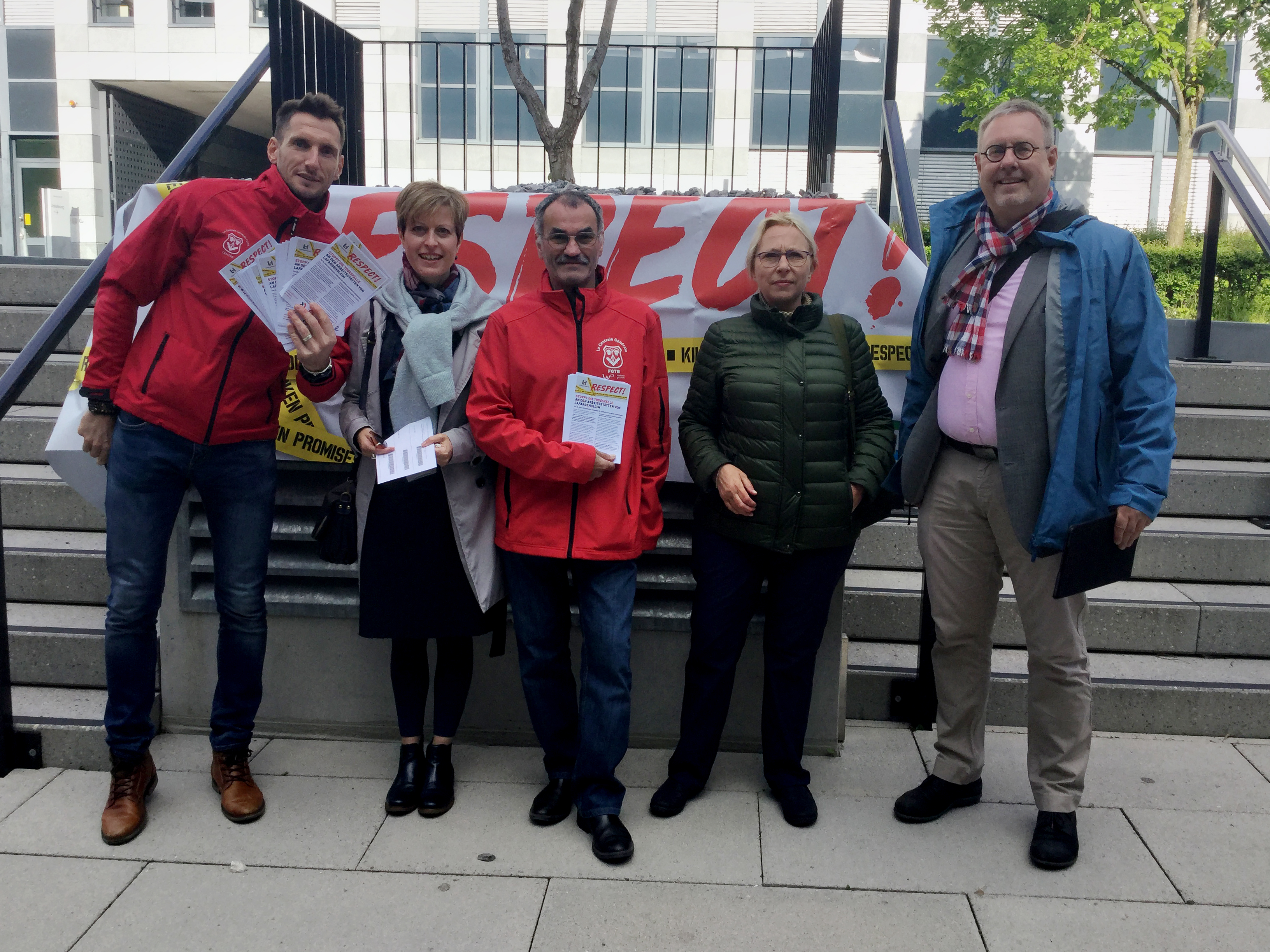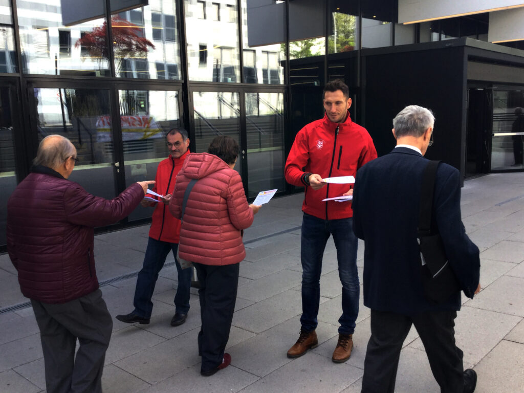 Prior to the meeting, union activists also distributed flyers in front of the venue in Dübendorf, Switzerland. Both flyers and speeches at the meeting contained the same important core message: unions demand more respect from the company towards their employees.