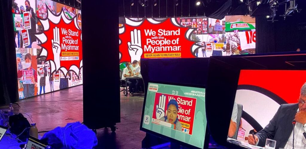 During its third and wholly virtual Congress, a resolution on Myanmar was adopted, introduced by Khaing Zar, president of Industrial Workers Federation of Myanmar (IWFM).