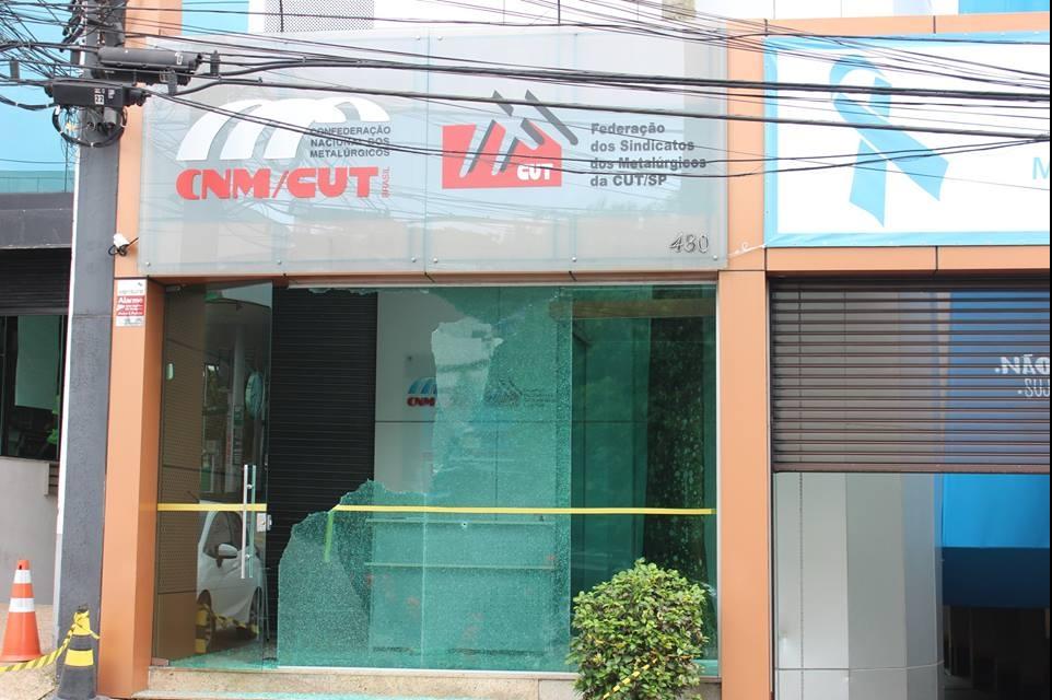 The glass front of the union office, located in São Bernardo do Campo, was smashed on Wednesday night.