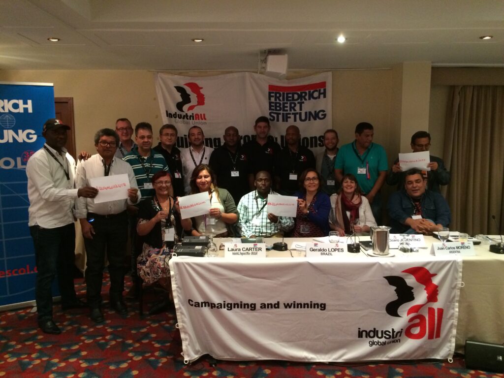 The regional network also held a press conference to express its solidarity with Sintracarbón, the Colombian coal workers’ union whose members at Cerrejón had voted overwhelming in support of strike action if the mining company, which is jointly owned by Anglo American, BHP Billiton, continued to demand concessions in contract negotiations. Sintracarbón has since successfully concluded the collective agreement.