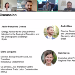 Javier Pamplona, Energy Advisor to the Deputy Prime Minister for the Ecological Transition and the Demographic Challenge in Spain, shared experiences with its just transition strategy, particularly the coal phase-out initiative. Spain has achieved a 90 per cent employment rate and successfully restored territories impacted by the transition to renewable energy. Pamplona underscored the importance of engaging stakeholders, especially in rural areas, and highlighted economic growth through wind, hydrogen storage, and industrial activities.