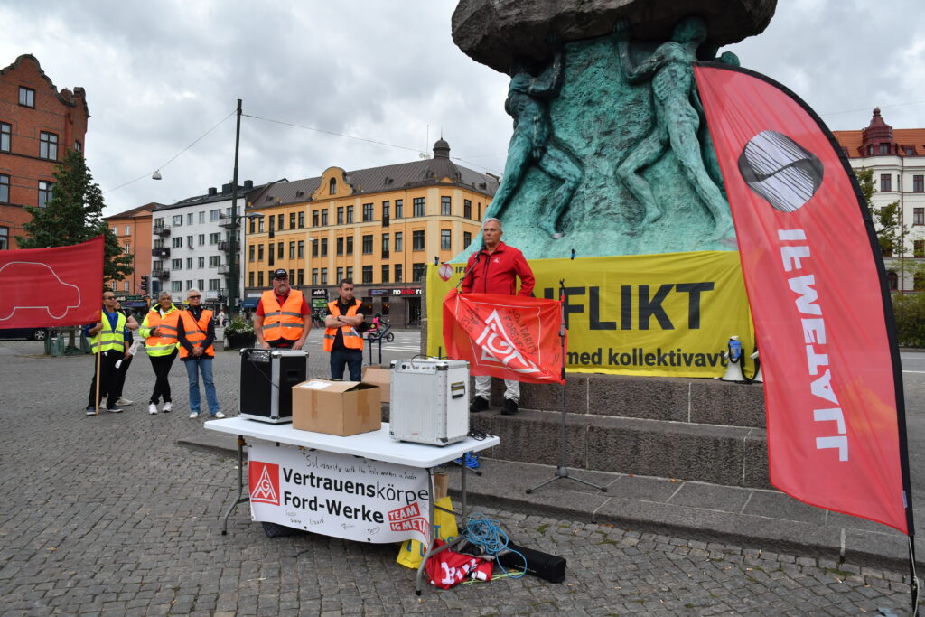 The German delegation was led by Benjamin Gruschka, Cologne plant works council chairman, German general works council, and Ford European works council, and included David Lüdtke, IG Metall chairman at Ford Cologne; Dennis Klein, Chairman of the youth representation at Ford Cologne; Sabine Lawitzke and Thomas Süther, both members of the Ford Cologne works council; and Hans Lawitzke, Secretary of the Ford European Works Council and Deputy Chair of the IG Metall at Ford Cologne.