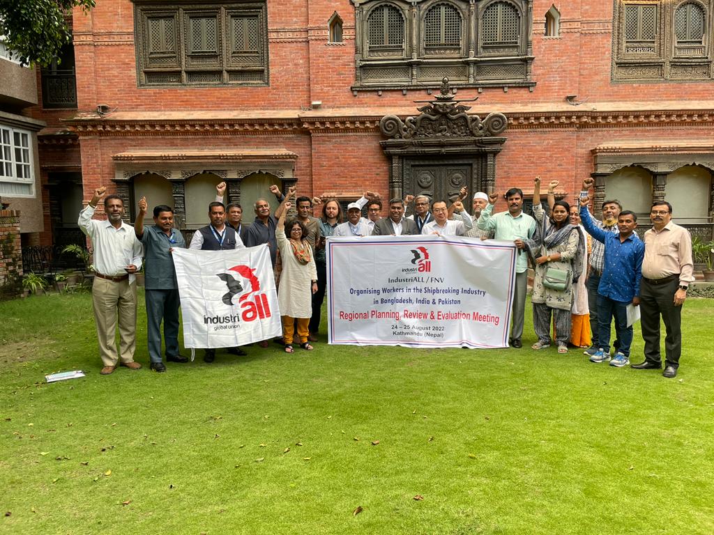 About 20 participants from five IndustriALL Global Union affiliates participated: ASSRGWA and SEWA from the Alang shipyards and Bhavnagar downstream industry in India, NTUF from the Gadani yards in Pakistan, and BMCGTWF and BMF from Chittagong in Bangladesh.
