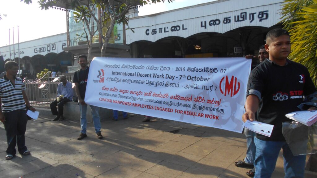13 October, 2016IndustriALL affiliates in Sri Lanka manifest on to stop precarious work on 7 October 2016, the world day for decent work.