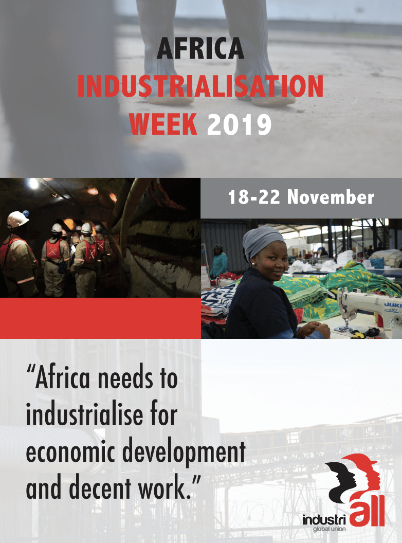 19 November, 2019The theme for the Africa Industrialization Week 2019 is: Positioning African Industry to supply the Africa Continental Free Trade Area (AfCFTA). And unions are calling for the agreement to include workers’ rights and decent work.