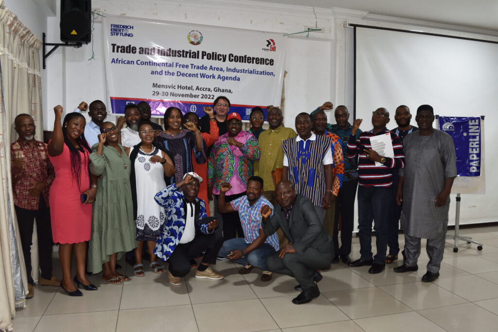 31 January, 2023Unions want labour provisions to be included in the next phases of negotiations of the African Continental Free Trade Areas (AfCFTA). This demand comes from IndustriALL affiliates in Kenya, Ghana, Guinea, Ivory coast, Lesotho, Nigeria, Senegal, Tanzania, and Zimbabwe who were present at a trade and industrial policy conference, in November last year in Ghana.