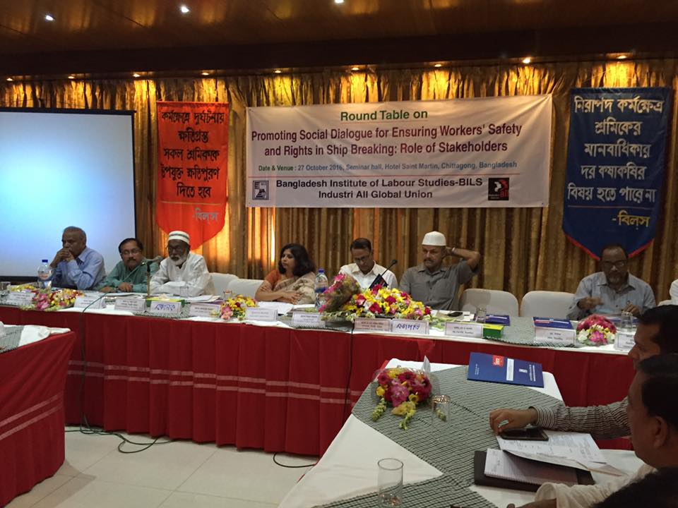 IndustriALL Global Union and the Bangladesh Institute of Labour Studies (BILS) jointly organized a round table on “Promoting Social Dialogue For Ensuring Workers’ Safety and Rights in Ship Breaking: Role of Stakeholders” on 27th October 2016 in Chittagong, Bangladesh.