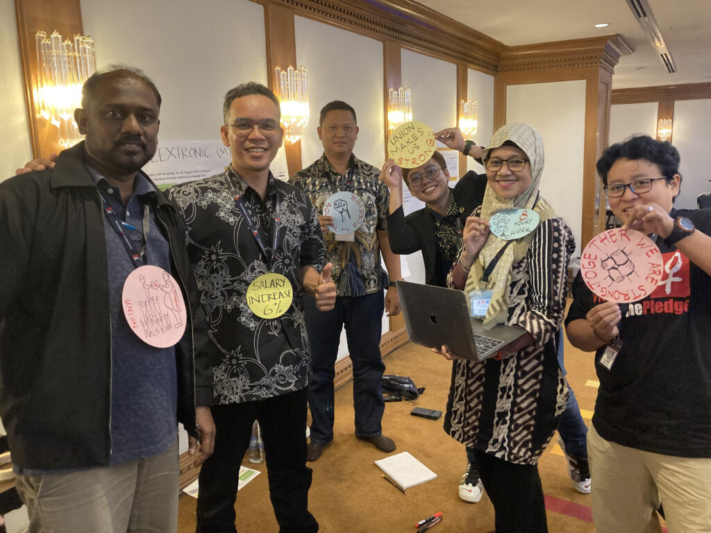 19 September, 202320 organizers met in Bangkok, Thailand to complete their three-year Organizers’ Development Programme (ODP), a joint training developed by IndustriALL and IG Metall focusing on strategic organizing, methods and campaigns. The aim is to provide organizers with skills and knowledge to develop organizing strategies, strategic planning and campaigning.