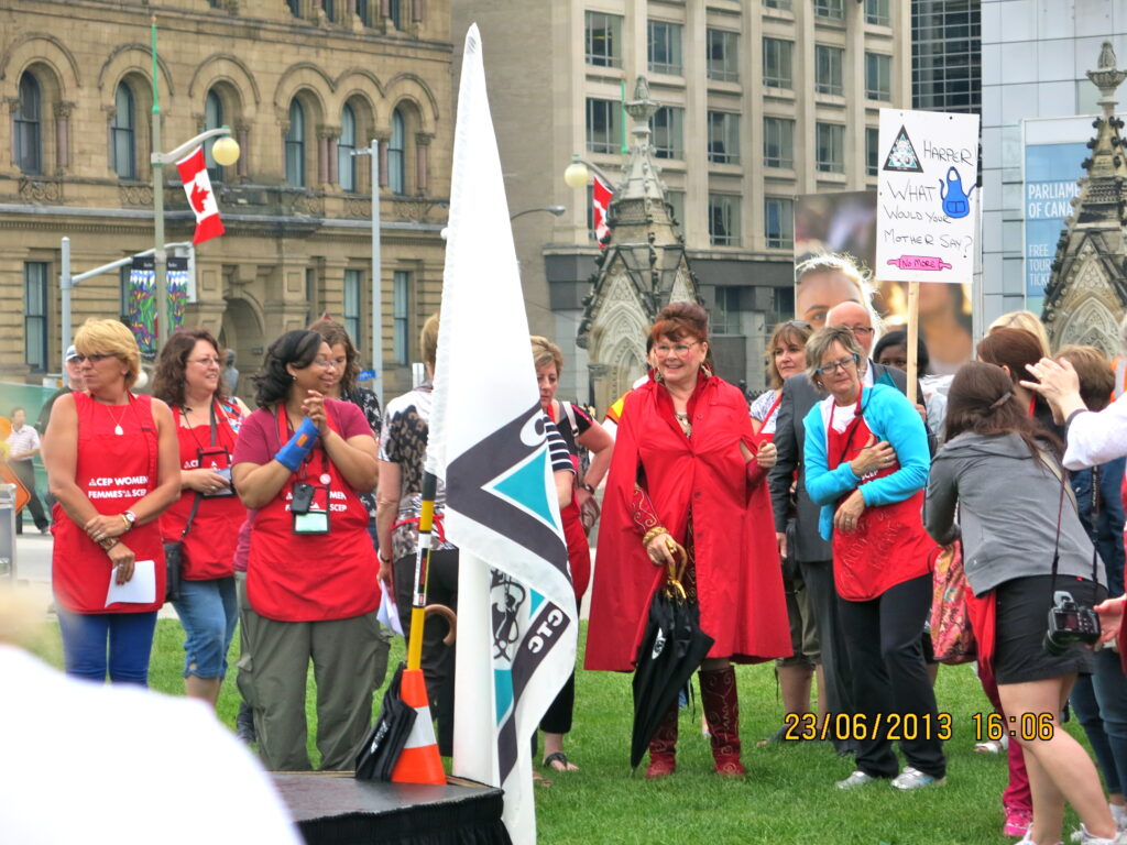 25 June, 2013The Canadian affiliate of IndustriAll Communications, Energy and Paperworkers Union of Canada (CEP), marched to Parliament Hill in Ottawa on Saturday, 22 June 2013, to vocalize their demands in the March of the Aprons.