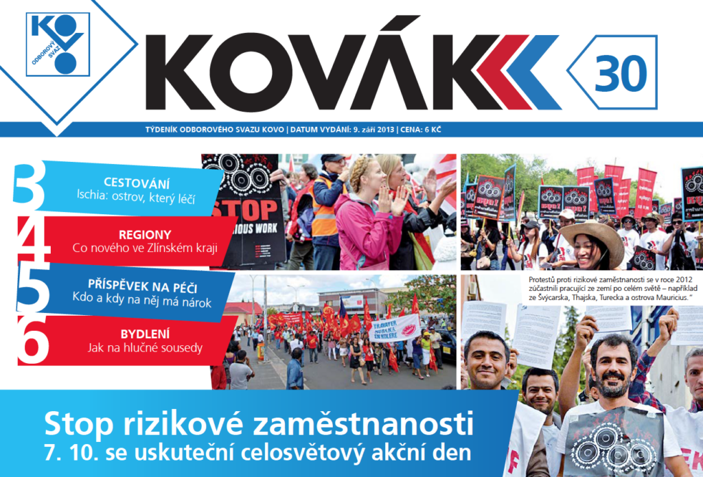 - Another article including the Czech version of the STOP Precarious Work poster and leaflet in the 7 October Kovak issue distributed into all members