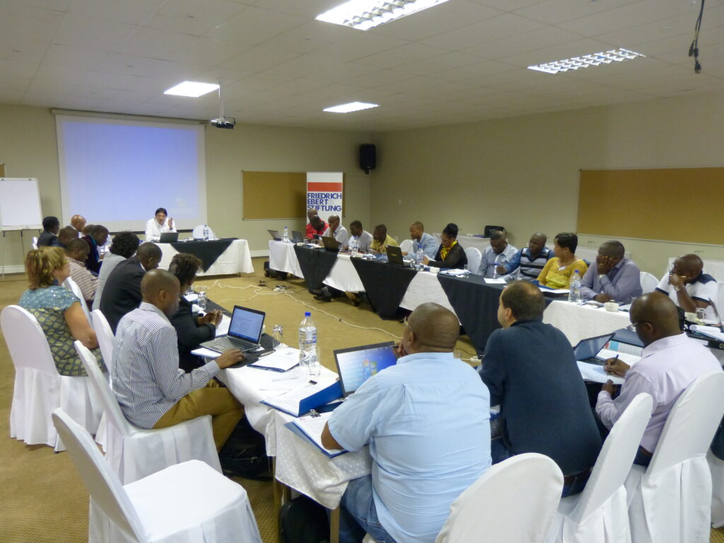 Bringing together energy affiliates of IndustriALL from Botswana, DRC, Mozambique, Namibia, Swaziland, Tanzania, South Africa Zambia and Zimbabwe, the SAEN, supported by the Friedrich-Ebert- Stiftung (FES), debated at length the future strategy in the face of concerted employer attacks on trade unions in the sub-region. Unions decided that they needed to increase communication between themselves in order to develop a common analysis of the Energy sector at both regional and national levels. Social media and electronic communication will continue to be used in the future, and unions needed to identify two contact persons for each union so that both leadership and a representative at the workplace can be contacted by other network members.