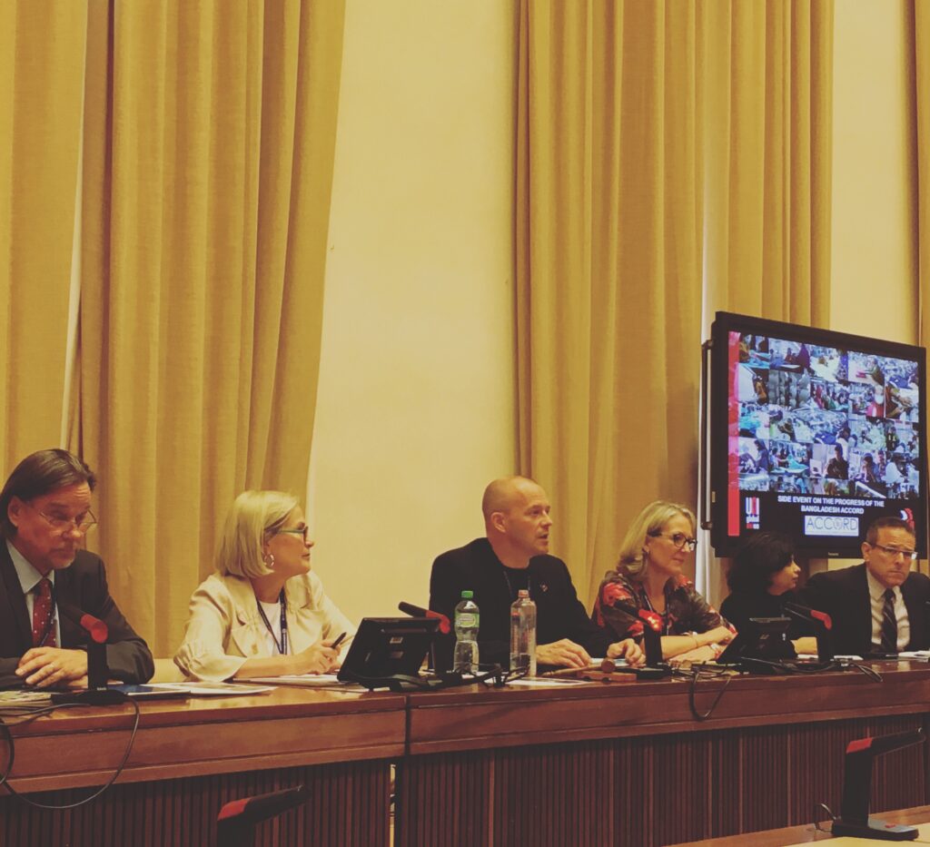 2 June, 2016Three years after the creation of the Accord on Fire and Building Safety in Bangladesh, its current status and future challenges were discussed at a side event at the International Labour Conference in Geneva on 2 June. Despite some unacceptable delays in remediation progress, the Accord is making significant headway according to representatives from both workers and brands.