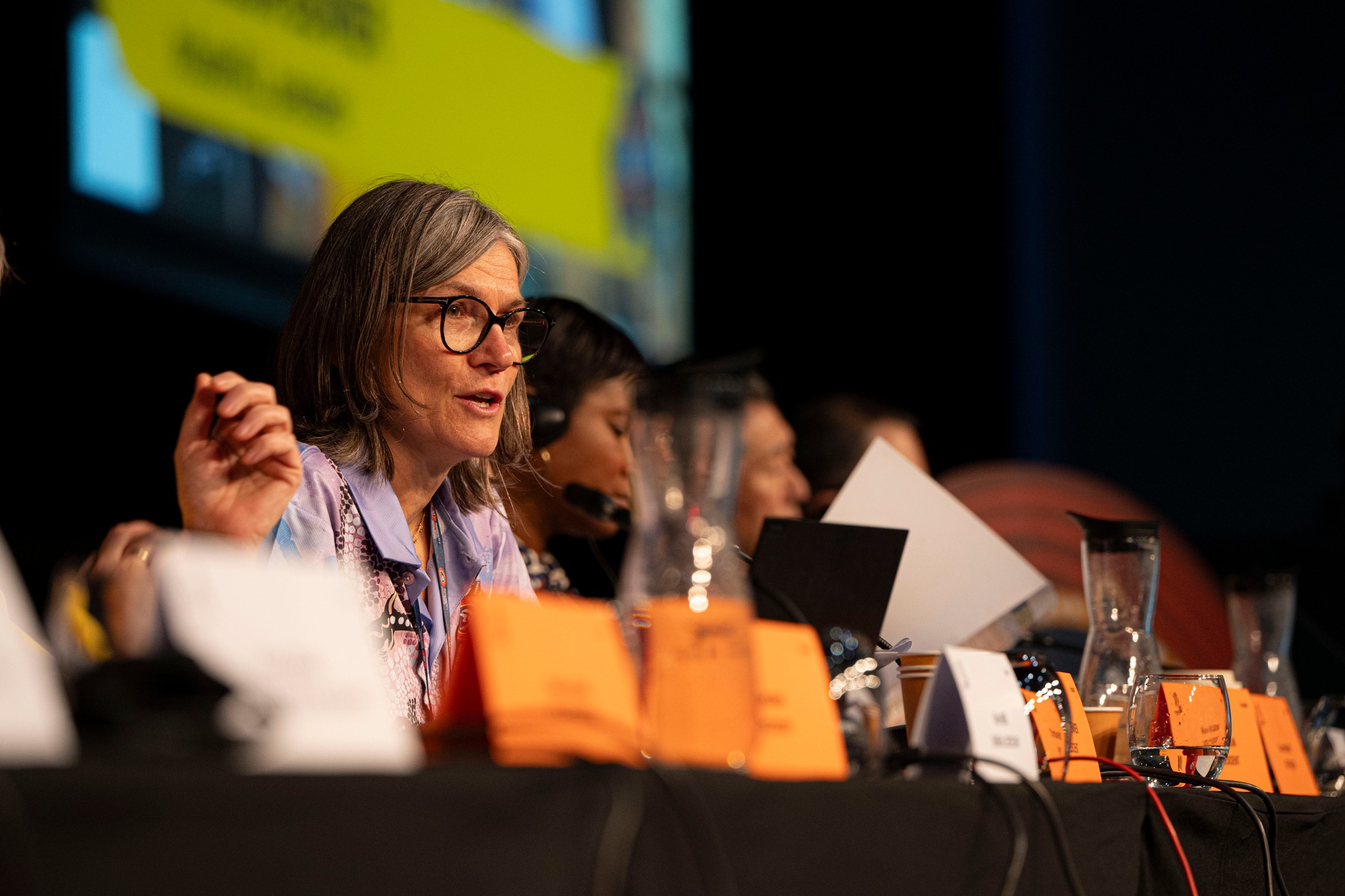 “Vivimos en una época de cambios rápidos... pero cuando miro la sala del Congreso, me siento esperanzada. Veo nuestra fuerza conjunta para afrontar estos retos. Estamos decididos a construir un futuro más sostenible, tal como se refleja en el lema del Congreso: ‘Organizándonos para un futuro justo’”.