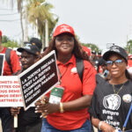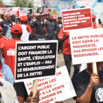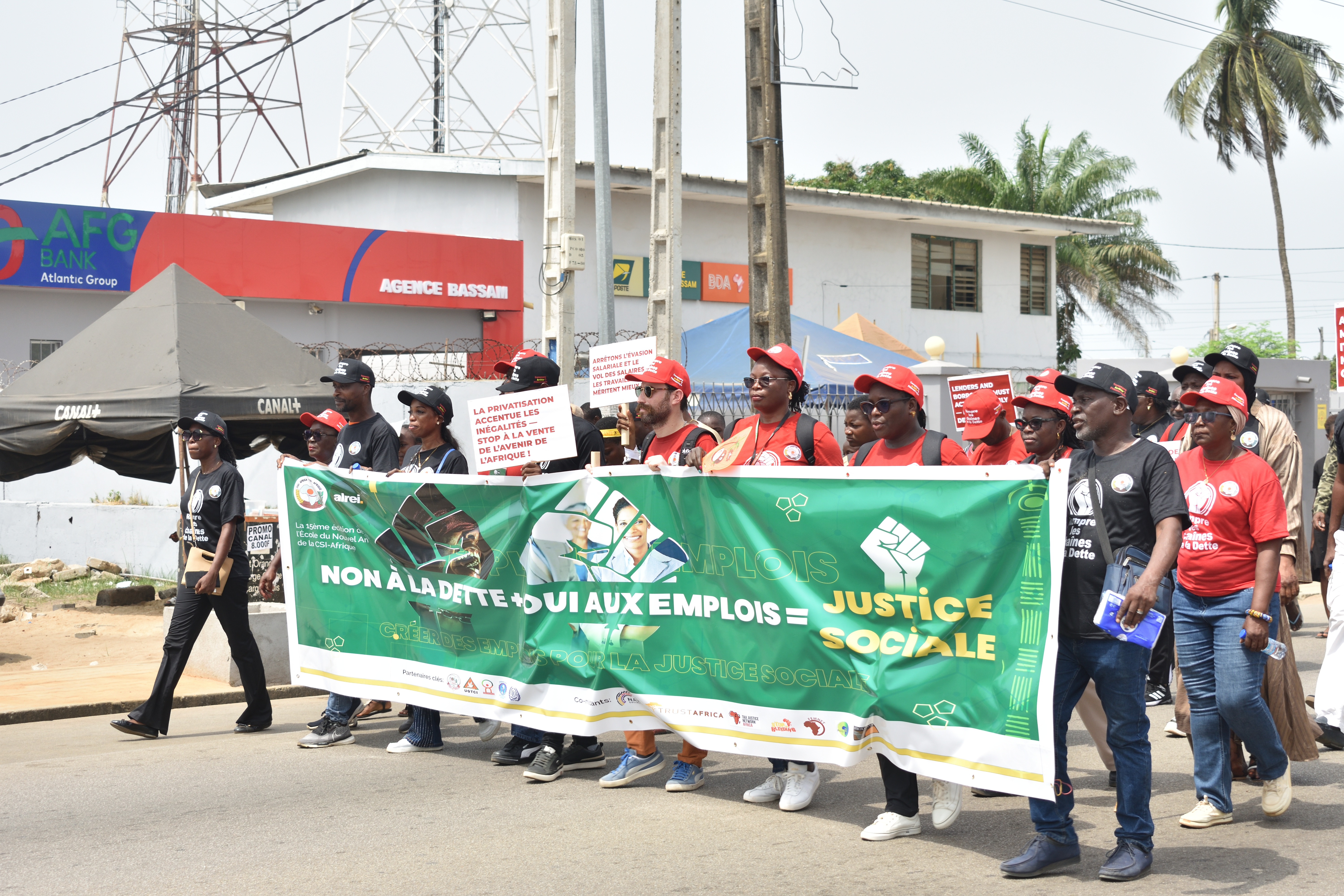 Durante la marcha por la justicia social, Joel Odigie, secretario general de la CSI África, dijo que la deuda de África debe ser cancelada.
