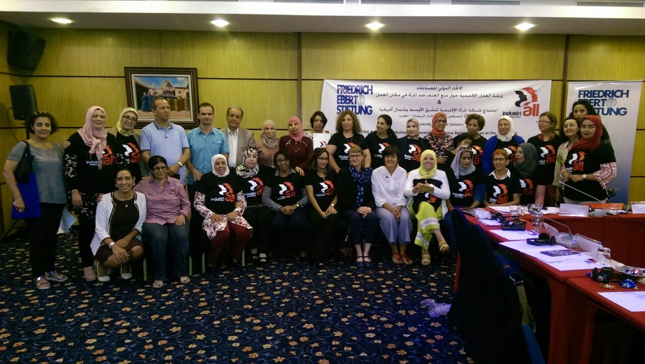 La red regional de mujeres de OMAN de la IndustriALL inició una campaña para detener la violencia contra las mujeres en agosto de 2016. En su última reunión en Casablanca, los días 28 y 29 de agosto de 2017, la red declaró la promulgación de nuevas leyes como un gran victoria para la promoción y la protección de los derechos de las mujeres.