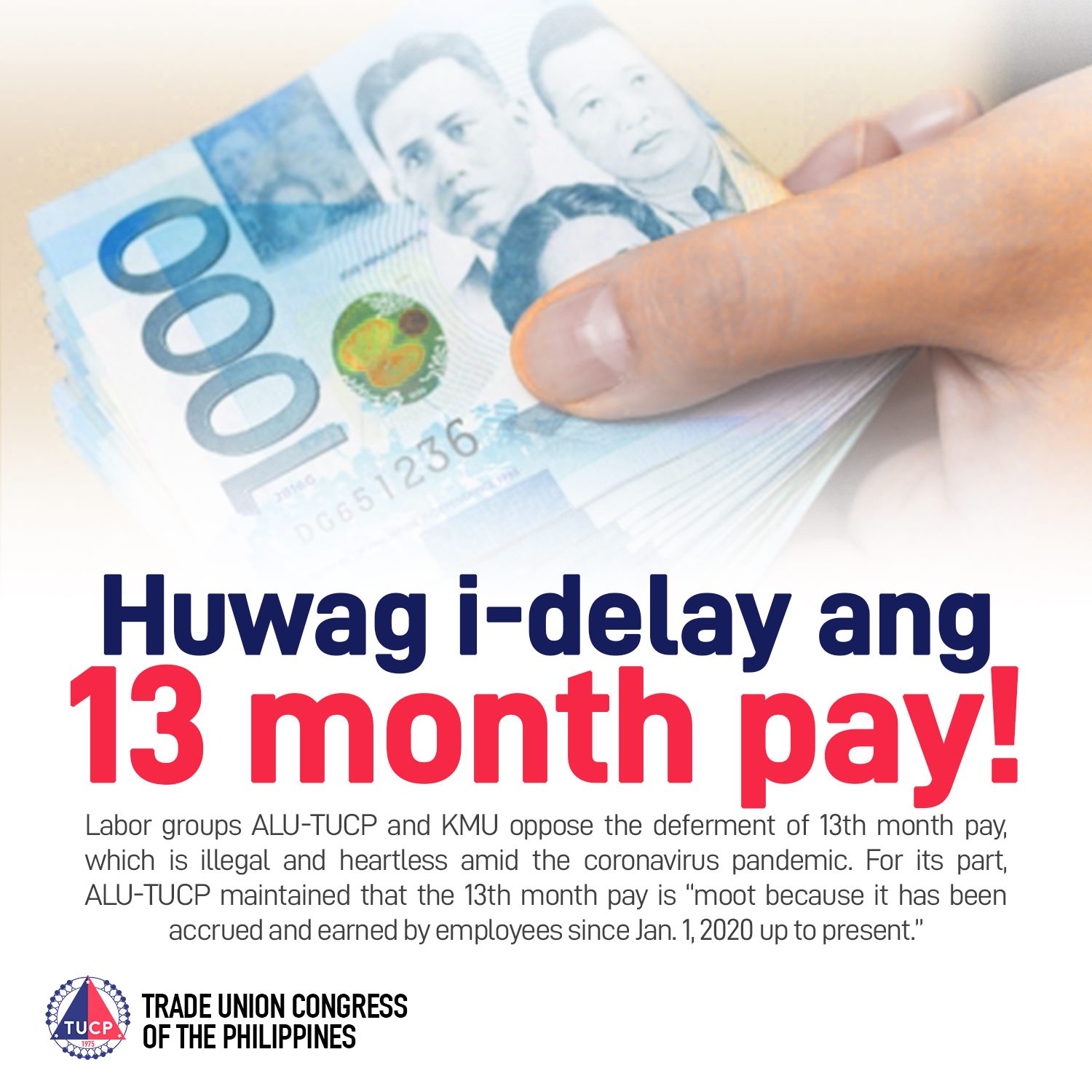 “ALU rechaza el aplazamiento del aguinaldo principalmente porque los trabajadores han ganado y acumulado los beneficios por su trabajo en los últimos 12 meses. El bono es un estándar laboral básico similar al salario mínimo, no se puede quitar ni aplazar”.