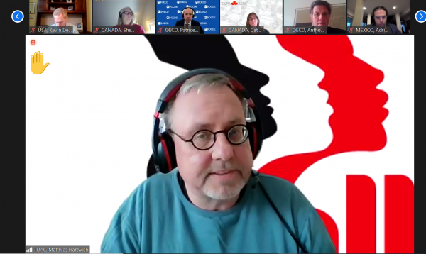En nombre del TUAC, Matthias Hartwich, director del sector siderúrgico de IndustriALL, se dirigió a las delegaciones y presentó el siguiente comunicado: