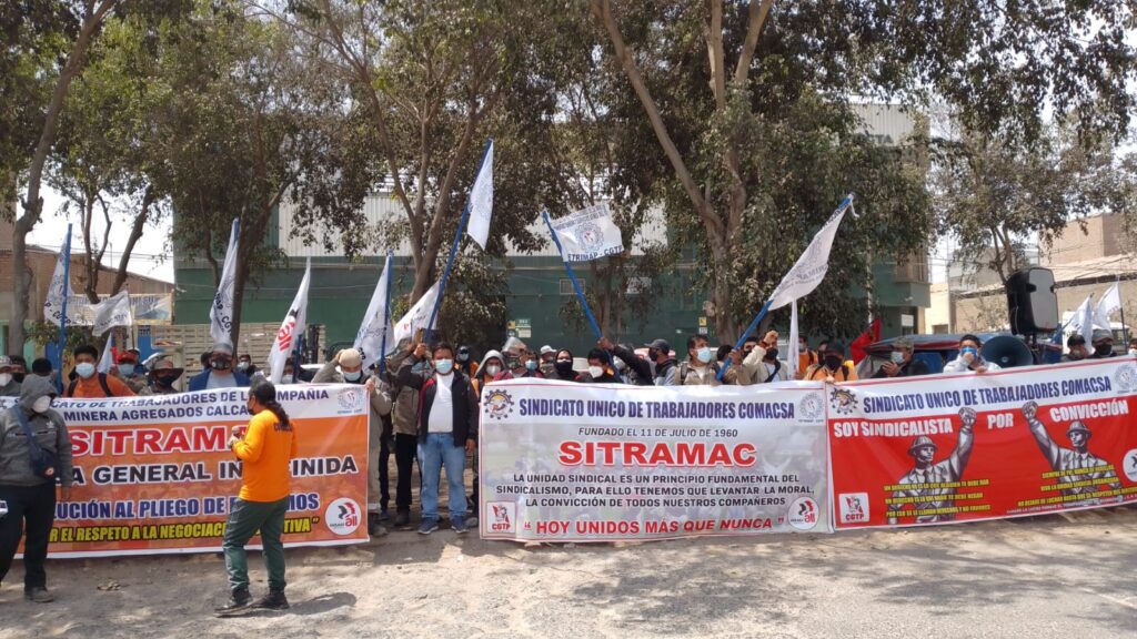 Por otro lado, los trabajadores de CIA Minera Agregados Calcareos S.A (COMACSA), empresa dedicada a minerales no metálicos, también están en conflicto. La compañía es de capital peruano y uno de sus accionistas es dirigente del gremio empresarial llamado Sociedad Nacional de Industrias y, según los medios nacionales de comunicación, estaría vinculado a un sector empresarial que promueve la vacancia del Presidente de la República Pedro Castillo.