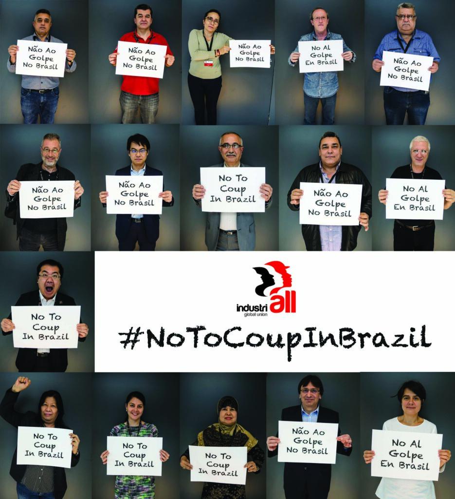 Desde el 12 de mayo, cuando comenzó el proceso, los trabajadores afiliados a IndustriALL en Brasil y en el mundo entero se pronunciaron contra el ataque a la democracia. Su destitución significaría un “golpe” por ignorar la voluntad de la soberanía.