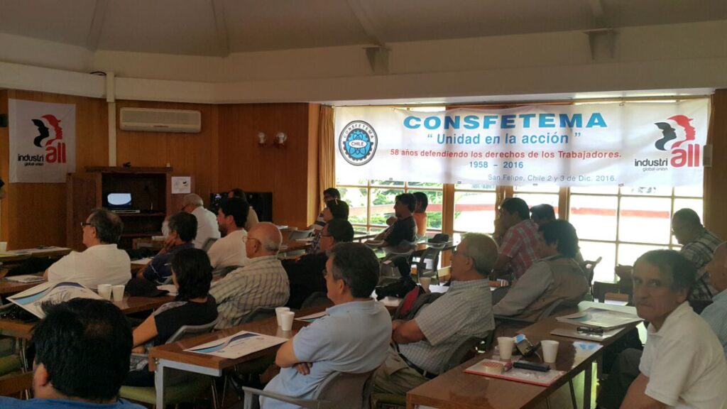 7 diciembre, 2016Medio centenar de dirigentes sindicales participaron en la Asamblea anual de CONSFETEMA el 2 y 3 de diciembre en San Felipe, Chile. Debatieron sobre la nueva ley laboral, el sistema de pensiones, la ratificación del convenio 176 de la OIT y el plan de acción 2016-2020 de IndustriALL Global Union
