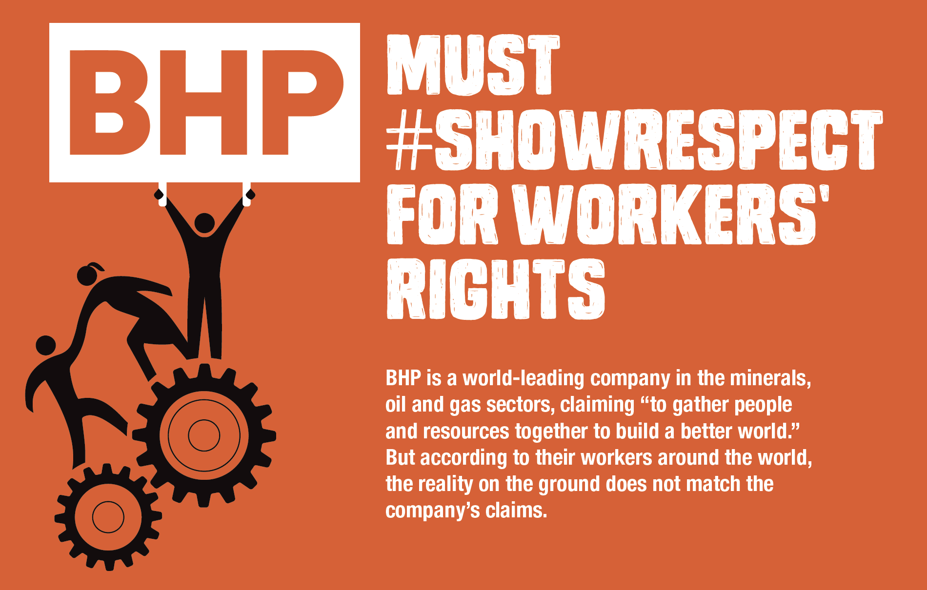 13 noviembre, 2019BHP es una empresa líder mundial de los sectores de minerales, petróleo y gas. Afirma que “reúne personas y recursos para construir un mundo mejor”. Según sus trabajadores y trabajadoras en todo el mundo, la realidad en el terreno no coincide con las afirmaciones de la empresa.