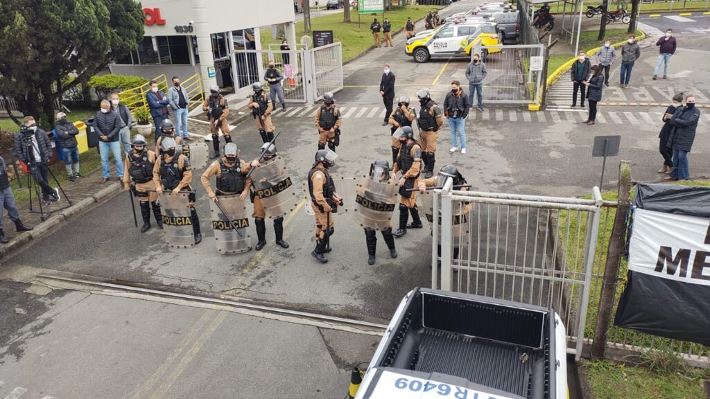 La policía militar (PM) se desvía de sus verdaderos deberes, asociados a la protección y el servicio de la población, y coarta a las organizaciones representativas de los trabajadores. Aplica la fuerza de choque, en las puertas de las fábricas, para interrumpir las asambleas y movilizaciones del Sindicato de Trabajadores Metalúrgicos en la Ciudad Industrial de Curitiba (CIC) que desde el pasado 10 de setiembre ha estado en huelga en varias empresas.