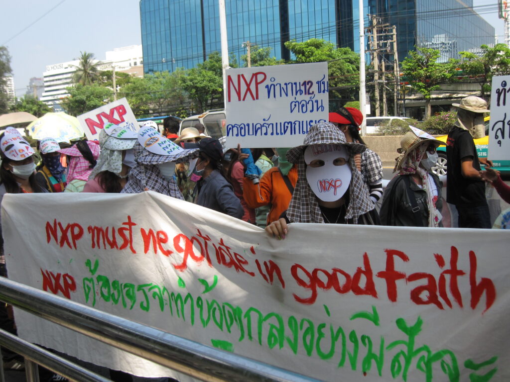 NXP Manufacturing emplea en Tailandia a 3.200 trabajadores, la mayoría de ellos mujeres. El salario medio en la fábrica es de 345 Baht (9 euros) diarios. NXP es el líder mundial en el diseño y la fabricación de circuitos integrados utilizados en etiquetas inteligentes, y provee a Apple, Samsung, Nokia, Dell, GM, BMW, Ford, Mercedes, Audi y varias líneas aéreas.