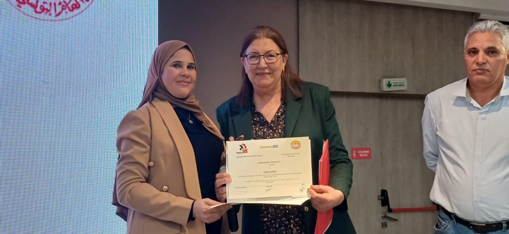En la ceremonia de graduación, celebrada en abril de 2025 en la ciudad de Túnez y a la que asistieron las secretarias generales adjuntas de la UGTT, Siham Bousta y Hedia Arfaoui, así como dirigentes de los sindicatos sectoriales de la UGTT, IndustriALL y una delegación de FNV y Mondiaal FNV, las participantes compartieron los resultados de su trabajo y sus esperanzas para el futuro.
