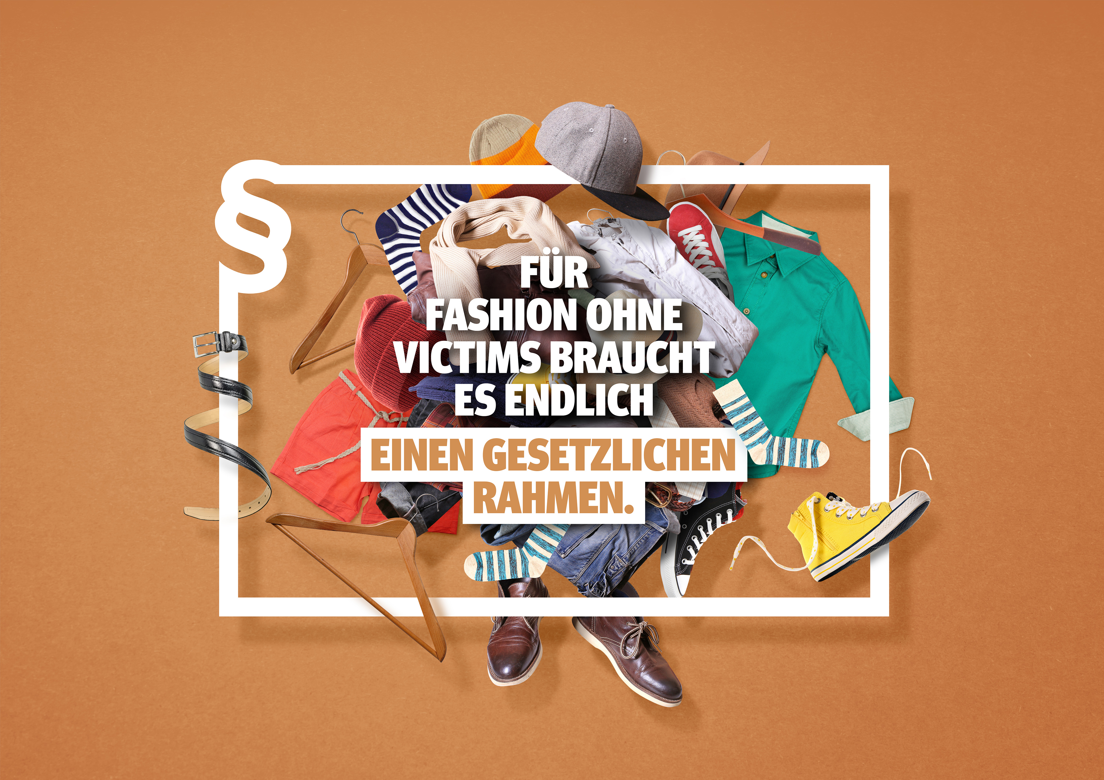 Imagen de la Iniciativa Lieferkettengesetz: “Por una moda sin víctimas: necesitamos un marco legal”.