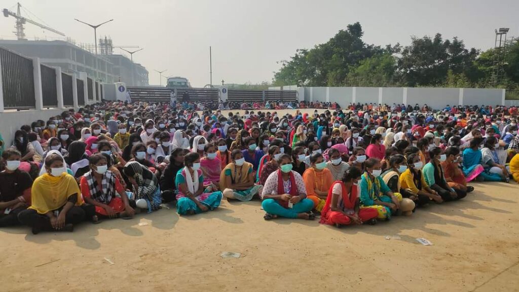 23 diciembre, 2021Miles de jóvenes trabajadoras de la planta de ensamblaje de iPhone de Foxconn en Tamil Nadu, India, bloquearon la carretera Chennai-Bangalore para exigir empleos dignos y mejores condiciones de vida y de trabajo. Las manifestaciones surgieron a causa de una intoxicación alimentaria en un dormitorio de Foxconn, que dejó a cientos de trabajadoras en el hospital.