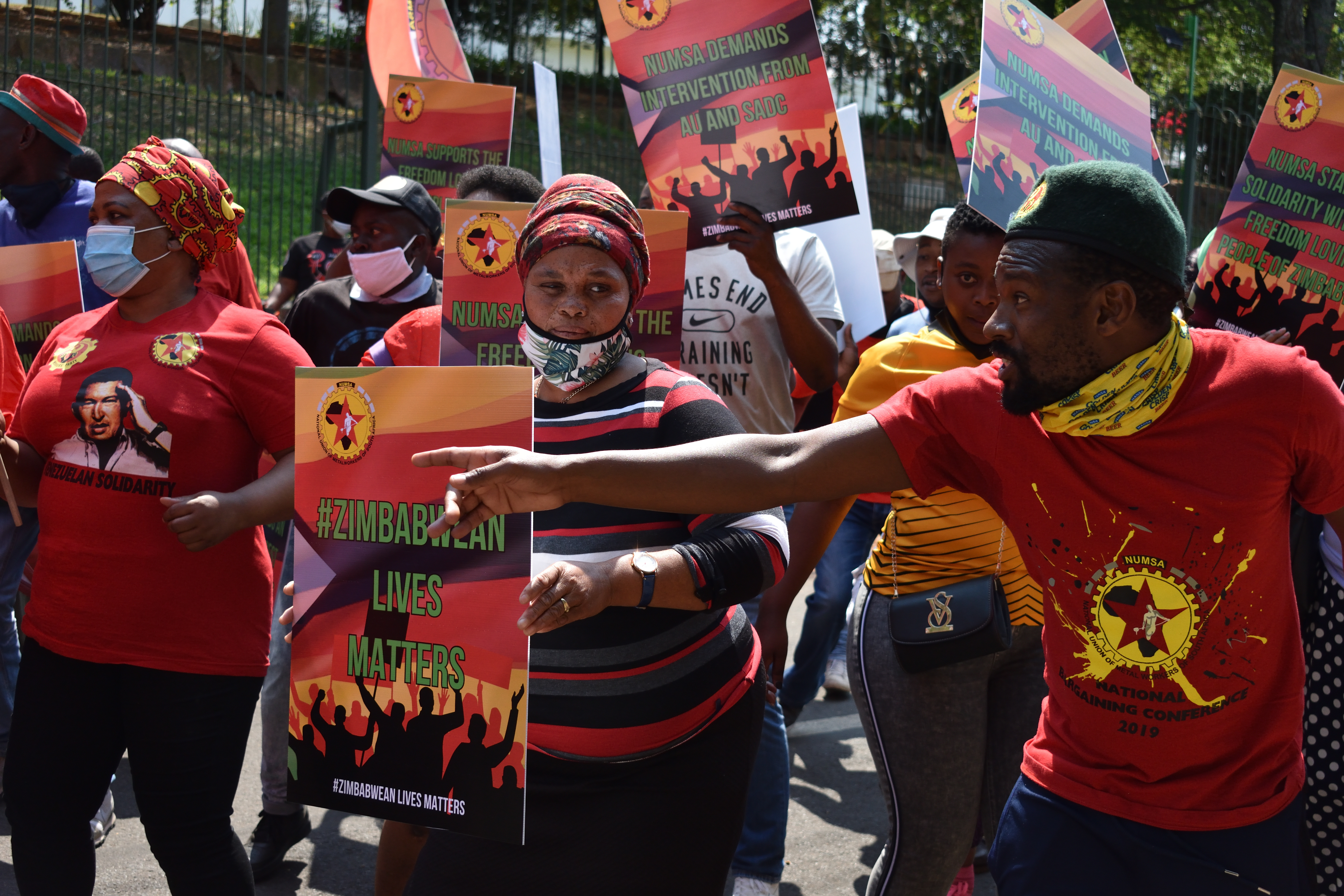 El 23 de septiembre, el NUMSA, que está afiliado a IndustriALL Global Union, organizó un piquete en la embajada de Zimbabue en Pretoria para protestar contra los abusos de los derechos humanos y laborales en el país. El piquete es una respuesta al Día Internacional de Acción convocado por la CSI-África para manifestarse en contra de las violaciones de los derechos humanos y laborales en Zimbabue.