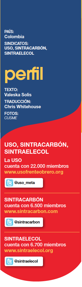 El sindicato de trabajadores de la electricidad, SINTRAELECOL, el sindicato de trabajadores del petróleo, USO, y el sindicato de trabajadores de la industria del carbón, SINTRACARBÓN, han decidido fusionarse con el fin de aumentar su capacidad de hacer frente a la influencia de las empresas multinacionales y luchar contra el abuso de poder de las autoridades.