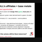 La economista de la UNAM de México, Alda González, presentó una investigación que hicieron en coordinación con IndustriALL sobre las tendencias del sector. La investigación explica que, como consecuencia de la pandemia de COVID-19, en el sector de metales básicos hubo un desarrollo de la digitalización, la automatización, en la infraestructura, cambios en las rutas comerciales y una aceleración de la transición energética.