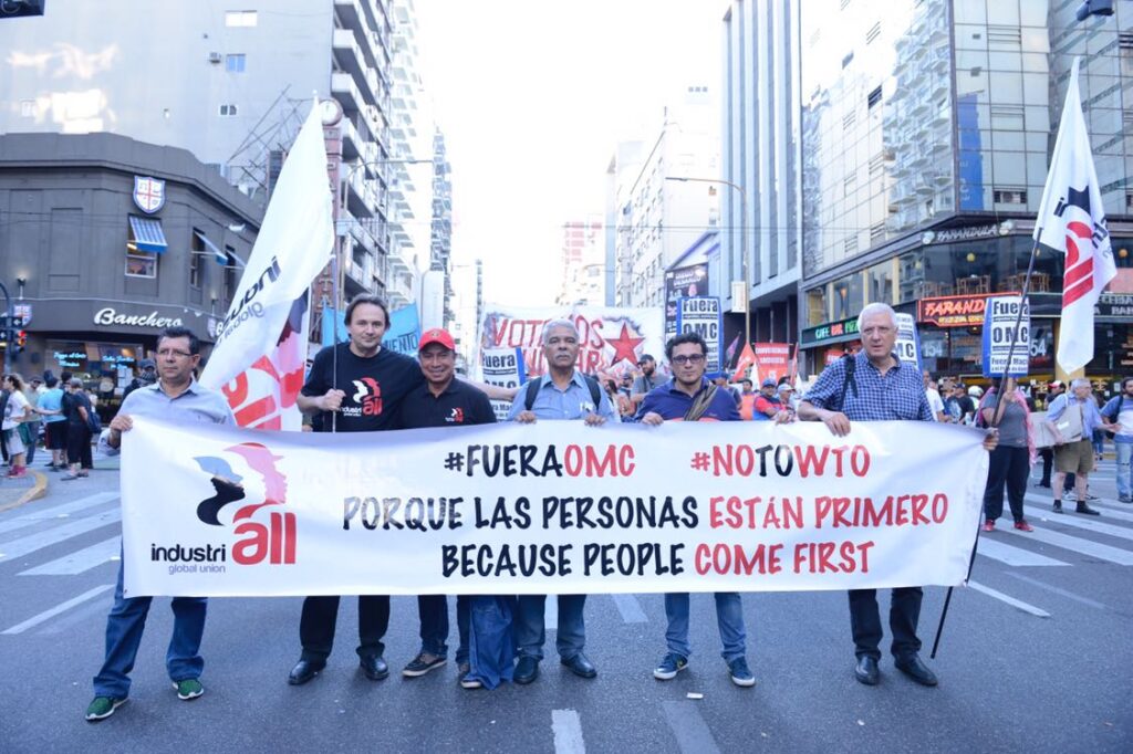 Los representantes de los gobiernos de 164 países y de las grandes transnacionales participaron en la cumbre de la Organización Mundial del Comercio (OMC). En simultáneo, las centrales sindicales argentinas CGT, la CTA de los Trabajadores y la Autónoma, la Coordinadora de Centrales Sindicales del Cono Sur (CCSCS), la Confederación Sindical Internacional (CSI), IndustriALL Global Union, UNI Américas y otros movimientos sociales sostuvieron una reunión y participaron de una marcha.