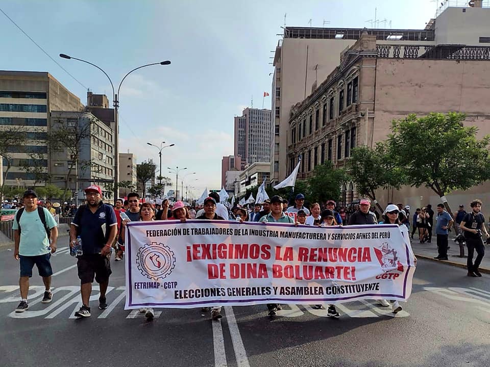 “Nos solidarizamos con nuestras afiliadas y con el pueblo de Perú. Condenamos la violencia del estado y los asesinatos contra su pueblo. Rogamos al Congreso, al poder ejecutivo y judicial a que adopten las propuestas de los trabajadores y del movimiento social.