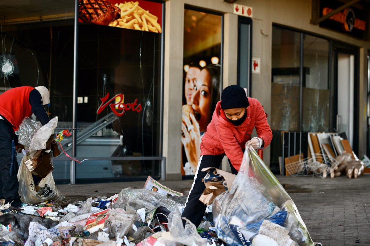 Sin embargo, en medio de la pobreza generalizada, agravada por la pandemia y la reciente retirada de una subvención por COVID-19, las manifestaciones, principalmente en las provincias de Gauteng y KwaZulu-Natal, se transformaron en motines por alimentos y en un malestar general.