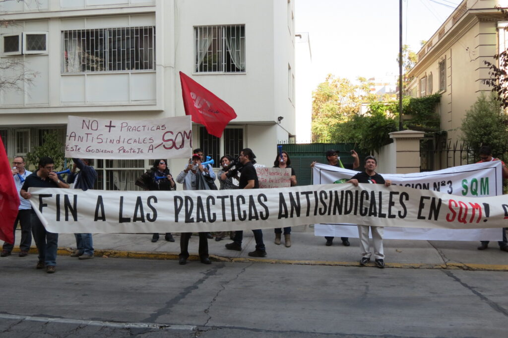 La Sociedad Química Minera chilena que explota el Litio, desaforó a dirigentes sindicales, negando los permisos sindicales establecidos para los dirigentes por derecho propio, sumado a la denegación de trabajo durante nueve años al presidente del sindicato, Nelson Pérez Varas.
