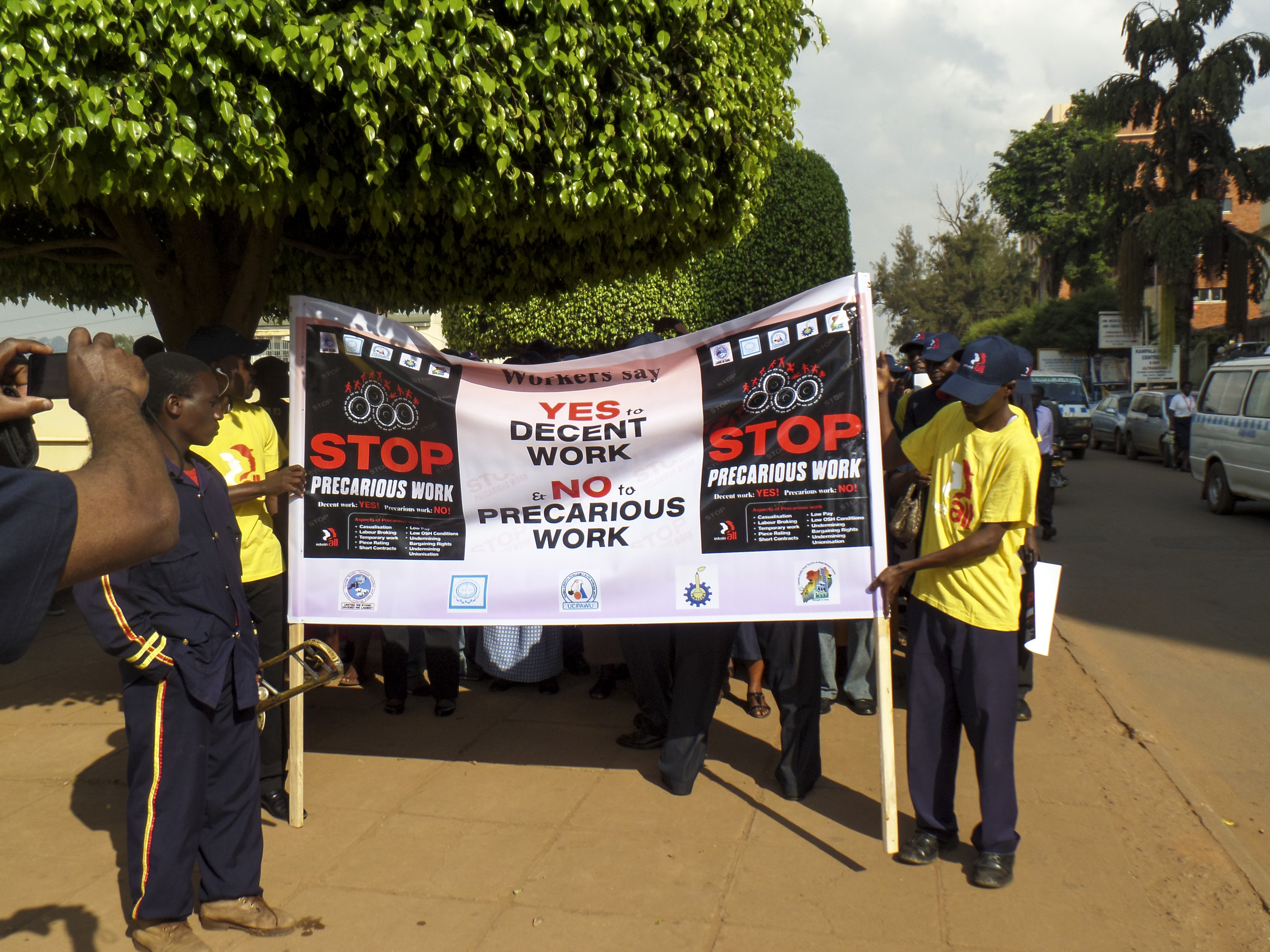 9 octubre, 2014El 7 de octubre los afiliados de IndustriALL en Uganda marcharon por la ciudad y celebraron una conferencia de prensa y un debate público con el objetivo de sensibilizar a la población sobre el problema del trabajo precario.