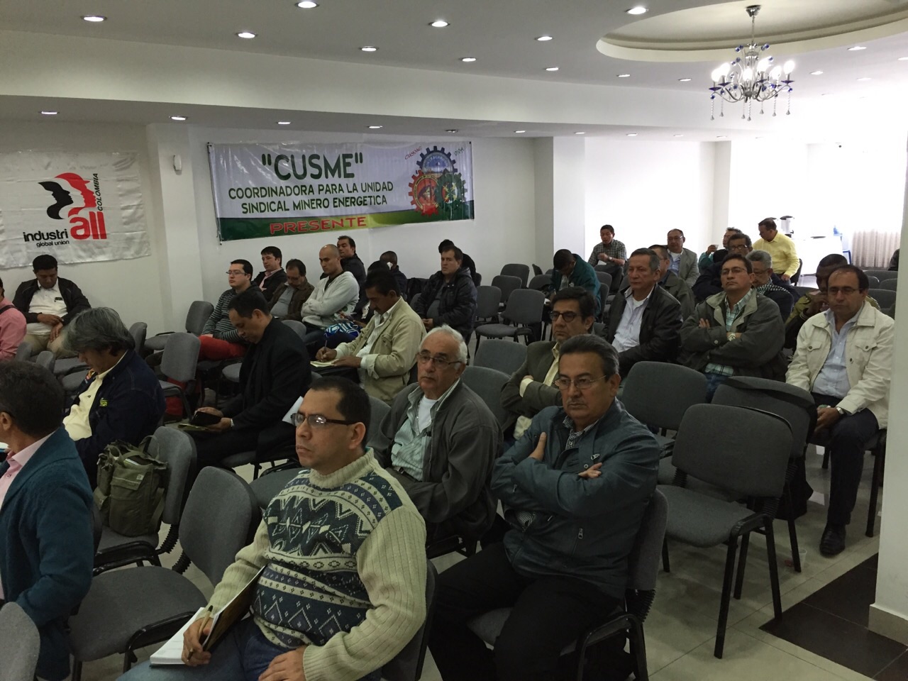La réunion était présidée conjointement par les présidents des syndicats du CUSME: Pablo Santos (Sintraelecol), Jairo Quiroz (Sintracarbon) et Edwin Castaño (USO). Marino Vani, secrétaire régional adjoint et Carlos Bustos, coordonnateur des projets de IndustriALL en Colombie, représentaient IndustriALL Global Union.