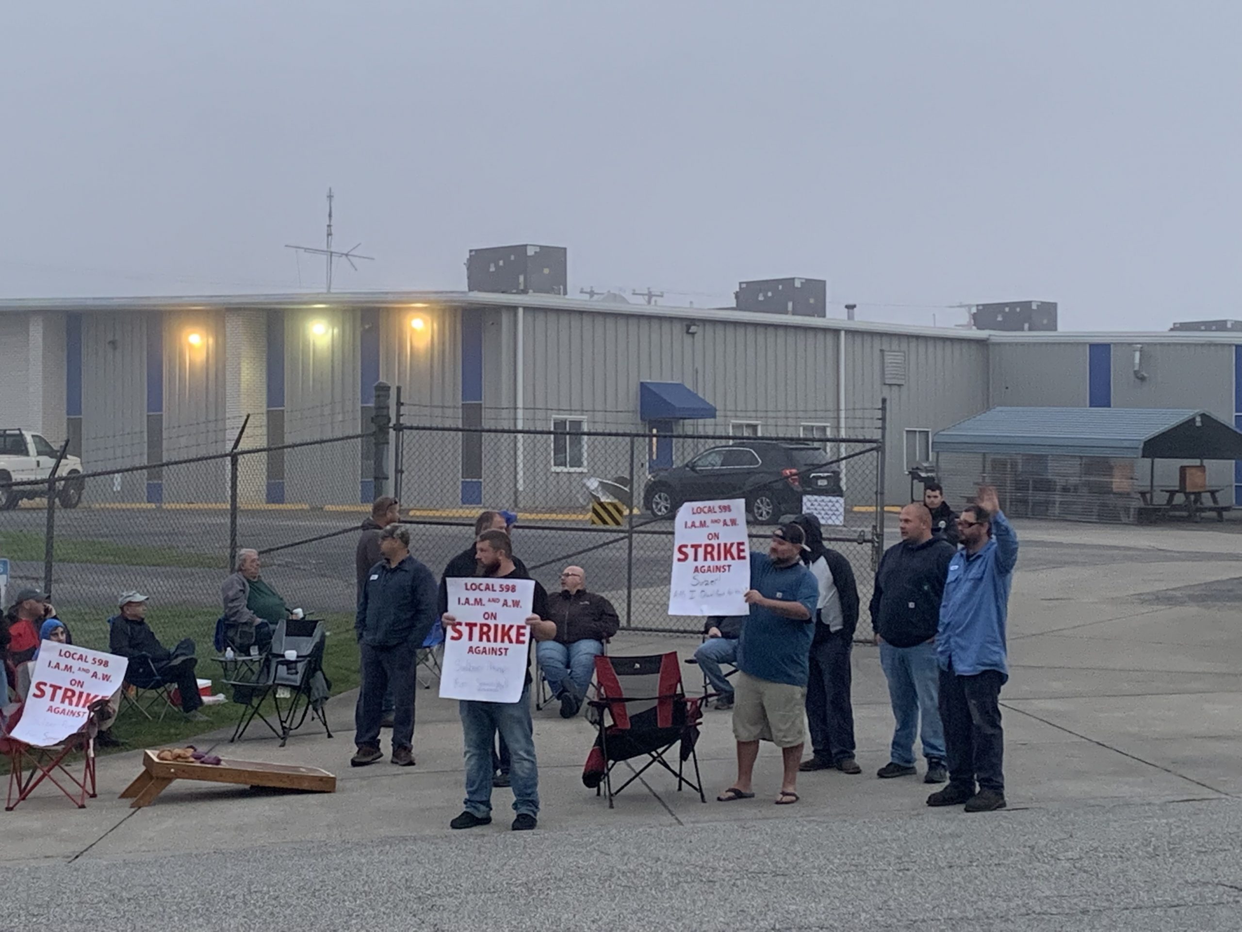 Ces membres de la section locale 598 (District 54) du "Machinists Union" se sont mis en grève à minuit, le vendredi 1er octobre. Ils ont installé un piquet de grève devant l'établissement situé au 1305 de la grand-rue, Main Street.