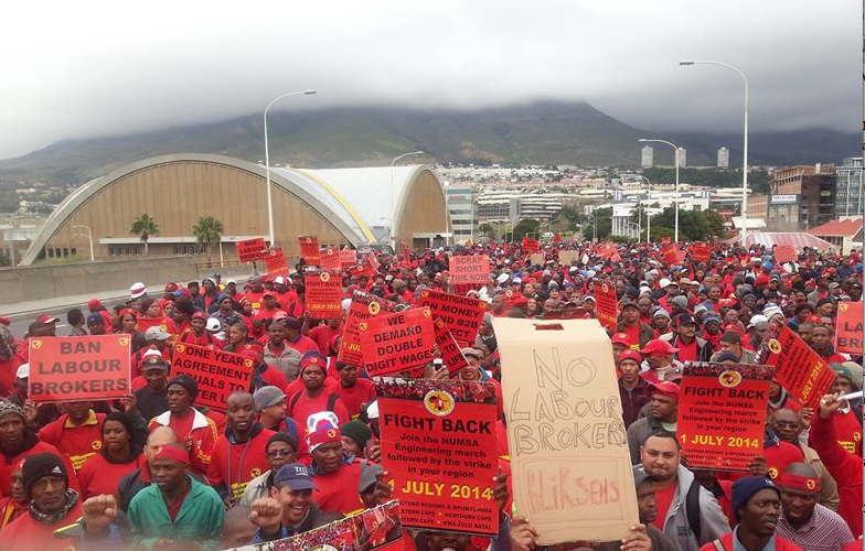 4 août, 2014La grève qui se poursuivait depuis un mois dans le secteur de l'ingénierie s'est achevée lorsque les travailleurs ont approuvé à l'unanimité l'accord négocié par le Syndicat national des travailleurs de la métallurgie d'Afrique du Sud (NUMSA).